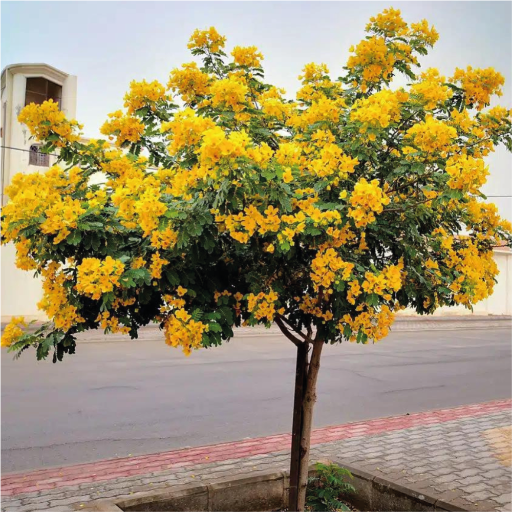شجرة أكاسيا جلوكا (Cassia glauca) هي شجرة استوائية وشبه استوائية تتميز بجمالها الأخضر الدائم وأزهارها الصفراء الزاهية. تُعرف أيضاً باسم "سنط ذهبي" أو "سينا ذهبي". تتميز هذه الشجرة بـ: